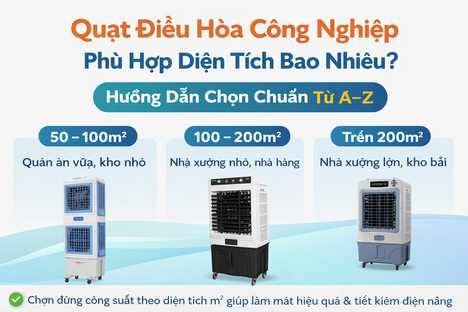 Bài viết này sẽ giúp bạn chọn đúng máy làm mát công nghiệp theo diện tích thực tế, đảm bảo hiệu quả và tiết kiệm chi phí.