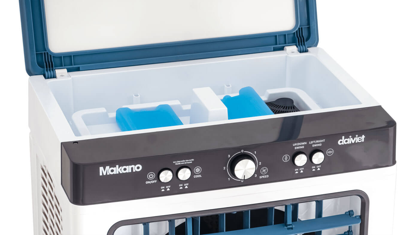 - Kết hợp đá khô hiệu quả: Đặt 2 hộp đá khô đã đông lạnh vào ngăn chuyên dụng, giúp máy làm mát hơi nước Makano tạo gió lạnh sâu hơn, lý tưởng cho ngày nóng bức.