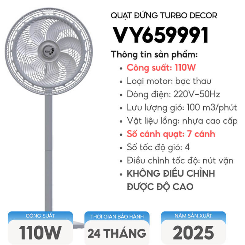 Thông Số Kỹ Thuật Quạt Đứng ASIAVINA Turbo Decor VY659991